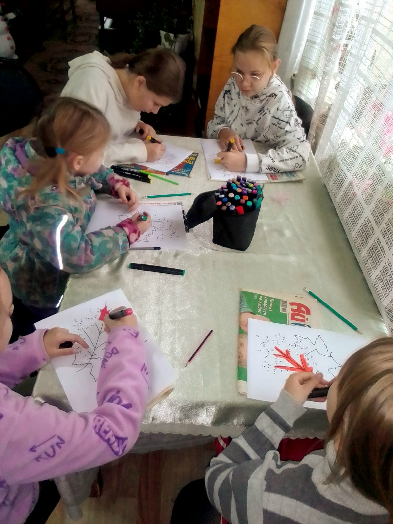 Библиотекарь рассказала детям интересные факты об изменениях в природе осенью. Викторины и загадки закрепили информацию о растениях, животных, грибах и ягодах. Между этапами викторины дети соревновались, кто быстрее раскрасит осенние листья, разгадывали филворды на темы грибов и ягод, ребусы и кроссворд про осень.