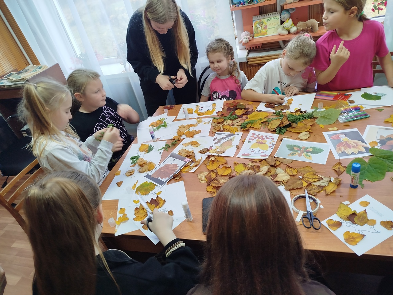 31 октября в Детской библиотеке царила особая, творческая атмосфера! Прошел увлекательный мастер-класс "Осенние фантазии", где юные таланты создавали невероятные аппликации из настоящих осенних листьев.